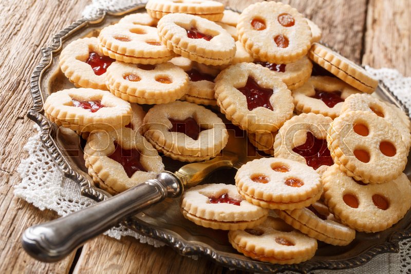 Photo about homemade austrian christmas cookies, vanillekipferl, linzer augen with jam, lebkuchen, walnussplatzchen in ceramic bowl with lid. These authentic austrian linzer cookies will be your favorite christmas cookies ever! The origional austrian recipe states to roll the cookies into beaten egg whites before rolling in the nuts. Popular throughout austria, germany, the czech republic, poland, slovakia and hungary, these cookies are a popular favorite, especially at christmas without vanillekipferl is practically unthinkable! Linzer cookies are christmas cookies from austria and germany.